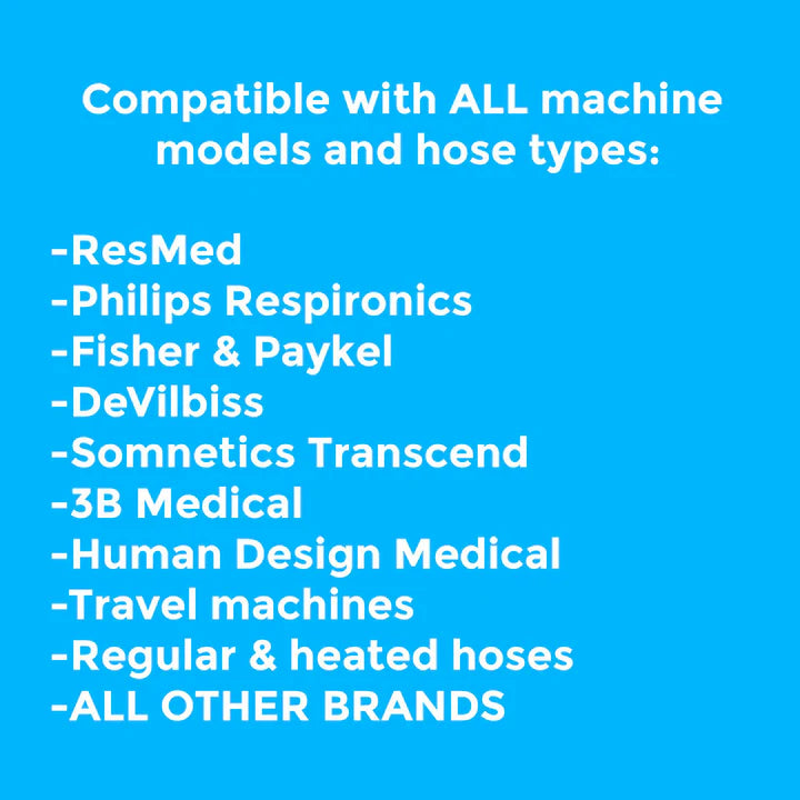 Universal connection option. A supplied universal hose adapter ensures compatibility with most common CPAP/BiPAP devices on the market.