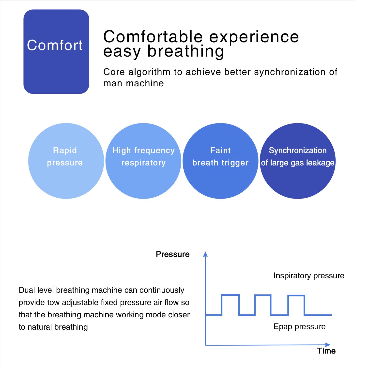 The MOYEAH iBreath BiPAP device reliably detects and distinguishes between obstructive and central apneas , ensuring appropriate and safe therapy at all times.